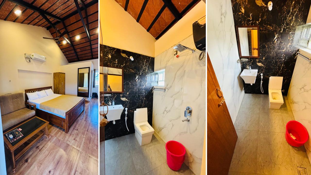 Our Eco Friendly room features a compact cozy ambience made of sustainable materials which will be perfect for a relaxing getaway. The large window decorates the teak- furnished rooms with natural lighting. The walls are painted with neutral colours while the ceiling is adorned with clay tiles and warm lighting adding to the room’s organic feel. Our Eco Friendly rooms are a perfect choice for couples looking for compact luxuriant rooms.